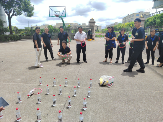 活動一開始,各位“套圈達人”便在舒適的天氣里紛紛大顯身手。每人手握三個套圈,眼神中滿是期待與專注。涼爽的風拂過臉頰,驅(qū)散了可能的疲憊,讓大家更能專注于瞄準目標。有的同事站在指定位置,微微屈膝,身體前傾,瞄準目標后,手腕輕輕一抖,套圈便如離弦之箭般飛了出去,在空中劃過一道優(yōu)美的弧線,精準地落在心儀獎品上,贏得周圍一片喝彩;有的同事則采用穩(wěn)健的投擲方式,小心翼翼地調(diào)整角度和力度,仿佛在進行一場精密的操作;還有的同事心態(tài)輕松,帶著幾分隨性拋出套圈,享受這涼爽天氣里游戲過程中的樂趣。現(xiàn)場氣氛熱烈非凡,大家互相加油鼓勁,歡聲笑語隨著微風回蕩在籃球場上空。
