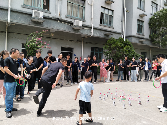 午后的陽光被微風揉碎,灑在公司生活區(qū)籃球場的水泥地上,少了幾分盛夏的灼人,多了些許難得的舒爽。2025 年 7 月 29 日 11 點 15 分,隨著工作人員將最后一件獎品擺放到位,這場醞釀已久的套圈活動正式拉開序幕。